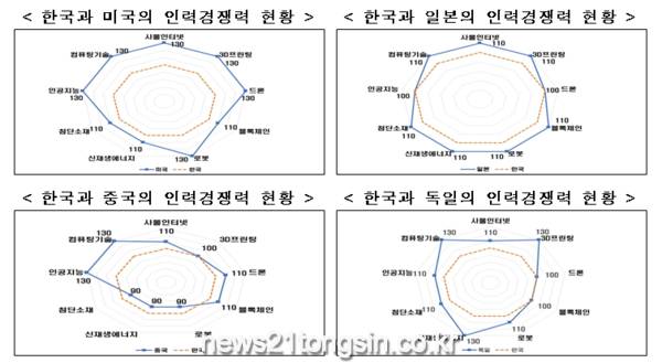 4차산업혁명 인력경쟁력 한국(=100) 꼴찌, 美(123.3)>獨(114.4)>日(107.8)>中(106.7)