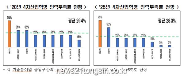 ’20년 한국의 4차산업혁명 인력부족률 29.4%... 5년 뒤에도 28.3%에 달해