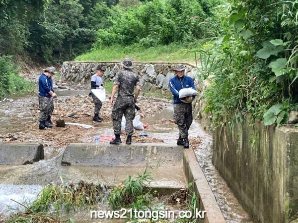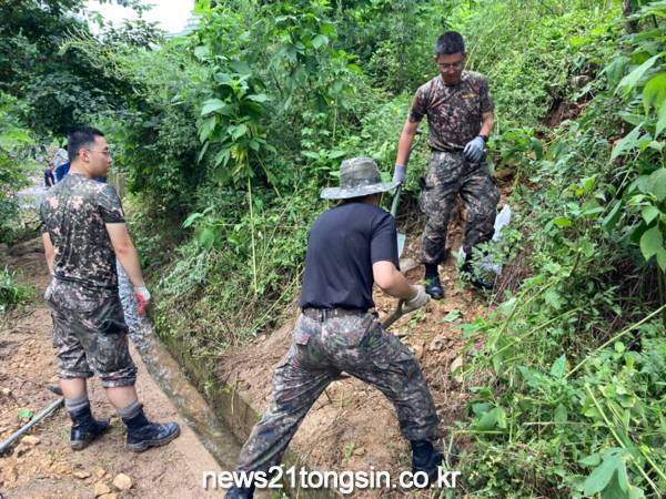 이에 13일 과훈단과 협조해 부대원 10여명을 투입, 도수로 응급복구를 전개하는 한편 소치리, 갑둔교, 원막골 등 장비 투입이 어려운 도수로 등 응급 복구대상지 4개소에 인력지원을 전개하는 등 지역주민들이 일상으로 복귀할 수 있도록 대민지원활동을 이어나가고 있다.