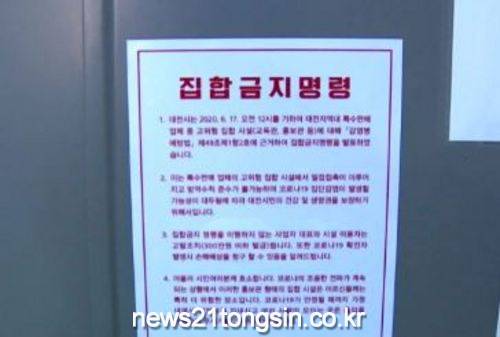 (대구=뉴스21통신) 유재원기자 = 대구시는 코로나19 생활방역을 위해 미등록·미신고 방문판매 등에 대한 집합금지와 이들 집합행위에 장소제공을 금지하는 조치를 8월 16일부터 9월 15일까지 한 달간 연장한다.