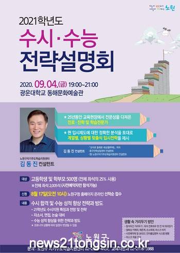 서울 노원구(구청장 오승록)가 2021학년도 대학입학 수시모집 전형에 지원하는 수험생들을 위해 무료 입시설명회를 개최한다고 밝혔다.
