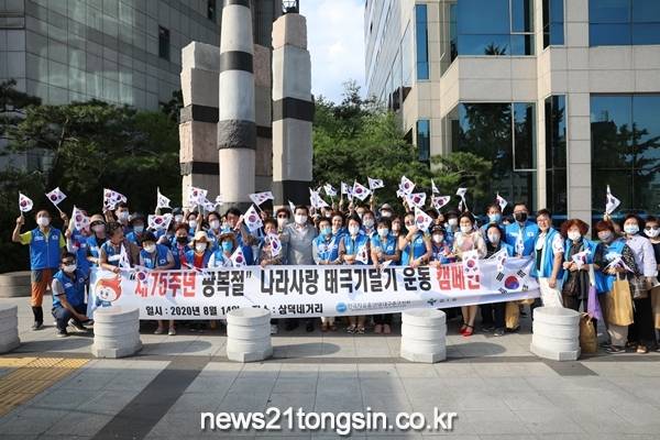 제75주년 광복절을 맞아 순국선열에 대한 감사한 마음과 나라의 소중함을 일깨움과 동시에 시민들의 애국심 고취와 국경일에 자발적으로 태극기를 게양하고자 하는 의식을 드높이기 위해 태극기를 나누어 주는 등 캠페인 행사를 실시하였다. 태극기달기와 함께한 코로나19 생활속 거리두기 캠페인으로 주민들을 대상으로 생활속 거리두기 예방수칙에 대해 설명하고 홍보물품을 나누어 주었다.