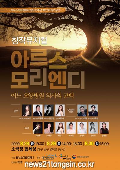 (대구=뉴스21통신) 김병철 기자= 보누스아트컴퍼니 창단 10주년기념 창작뮤지컬 <아르스 모리엔디_어느 요양병원 의사의 고백>이 공연된다.