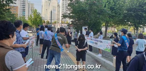 하계방학을 끝내고 신학기를 맞아 실시된 이번 캠페인은「코로나19는 멀리, 학교폭력은 더 멀리, 친구 마음은 가까이」라는 슬로건으로 학생들에게 학교폭력 예방 홍보 전단과 물품을 나눠주며 학생들에게 학교폭력에 관심을 가지고 적극적으로 예방해 줄 것을 당부했다.