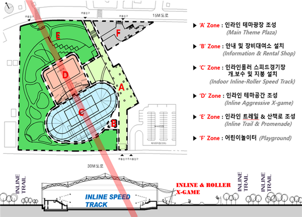 시는 경기장의 개보수를 시행하면서 기존 공간들의 장소적 특수성을 활용하고 다양한 아이템 부여를 통해 전국 유일의 인라인 테마파크로 조성한다는 계획이다.
