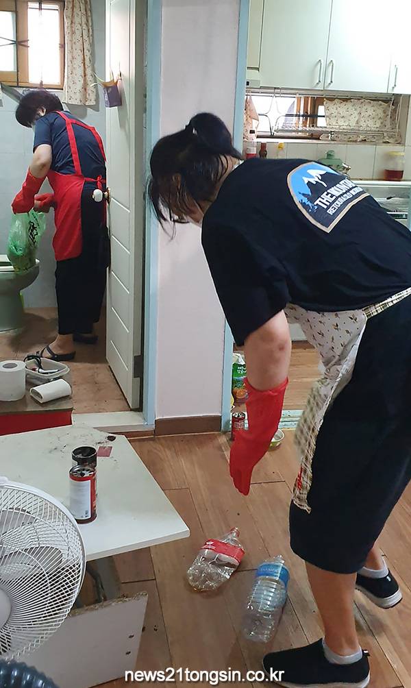 이에 갈마2동 찾아가는 복지전담팀은 관내 행복한 교회(목사 조상희)와 연계하여 재활용품 및 쓰레기를 수거한 후, 대대적인 청소와 소독을 하였다