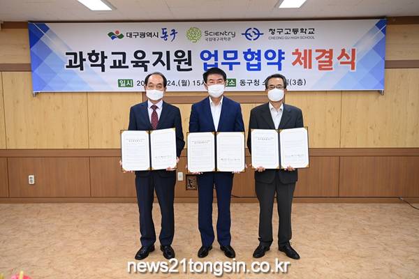 (대구-뉴스21통신) 김병철 기자= 대구 동구청은 국립대구과학관, 청구고등학교와 지난 24일 과학교육 상호협력을 위한 업무협약을 체결했다.