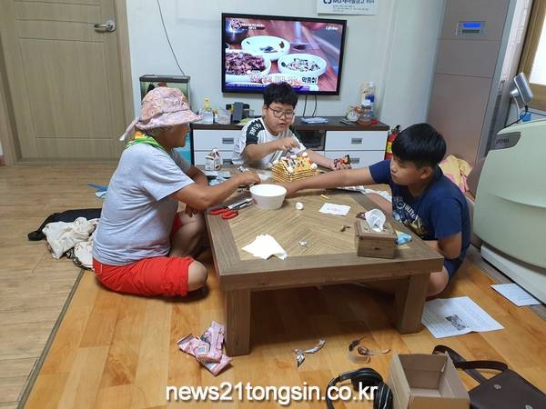 당초 지역 내 문화체험장 및 관광지를 방문하여 교과 연계 문화체험을 진행하고자 하였으나 코로나 19의 확산으로 외부 문화체험 대신 체험키트를 각 가정에 전달하여 가정에서 부모님과 학생들이 함께 체험을 할 수 있는 비대면 문화체험으로 진행 하였으며, 7월에 이어 두 번째로 실시 한 비대면 문화체험에는 학생들의 창의력과 공간·지각능력 향상을 돕고자 과자 집 만들기 키트를 학생들 가정에 전달하고 주말을 이용하여 체험이 진행되었다.