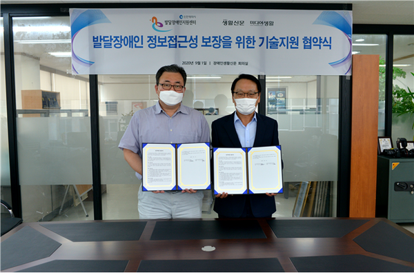 인천광역시(시장 박남춘)는 9월 1일 인천시발달장애인지원센터(센터장 이성근, 이하 인천센터)가 장애인생활신문&미디어생활(대표 조병호, 이하 장애인생활신문)와‘발달장애인 정보접근성 보장을 위한 기술지원’협약식을 가졌다고 밝혔다.