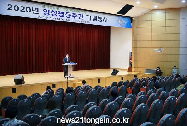 대전 서구(구청장 장종태)는 2일 청사 구봉산홀에서 2020 양성평등주간 기념행사를 개최하고 양성평등을 위한 공감대와 여론을 확산시키기 위해 노력하기로 다짐했다.
