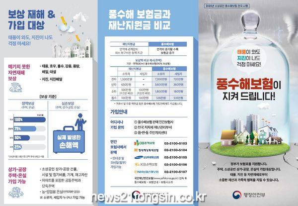 풍수해보험은 실제 주민이 입은 피해에 비해 턱없이 보상이 부족한 정부의 재난지원금 지원제도를 보완해 행정안전부가 관장하고 민영보험사가 운영하는 정책보험이다.