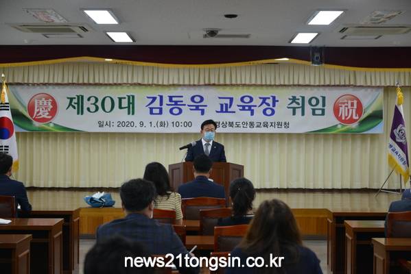 제30대 안동교육지원청 김동욱 교육장은 9월 1일 취임식을 가지고 행복 안동교육 실현을 위한 업무를 시작하였다.