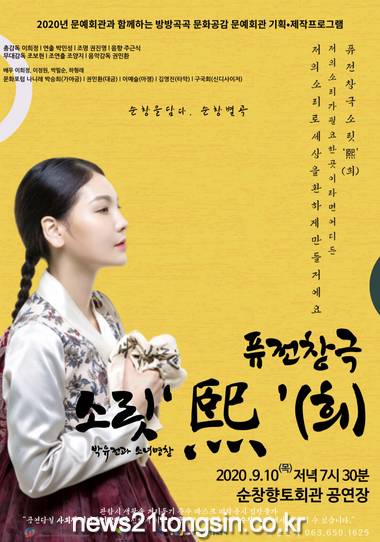 순창군이 사회적 거리두기 2단계가 2주간 더 연장되며 10일에 있을 문화공연을 비대면 공연으로 전환하기로 했다. 군은 오는 10일에 열릴 퓨전창극‘소릿‘熙(희)’- 박유전과 소녀명창’공연을 공연장 465석 중 115석만을 사용하여 대면 공연으로 진행하려 했으나 오는 20일까지 사회적 거리두기 2단계가 연장됨에 따라 비대면으로 전환했다.