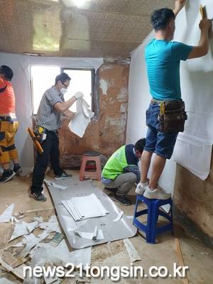 김모씨 가구 주거환경개선에는 20명 정도의 회원이 참여해 코로나19 예방을 위해 열 체크, 마스크 착용, 손 소독 등을 실시하고 오전, 오후 시간대를 나눠 10명씩 거리두기를 실천하며 진행됐다. 각 분야 전문가들은 도배와 장판 및 싱크대 교체, 천장 수리, 배선 정리, 배수구 정비, 집 청소 등 주거 전반에 걸친 맞춤 시공으로 김모씨에게 쾌적한 환경을 선물했다.