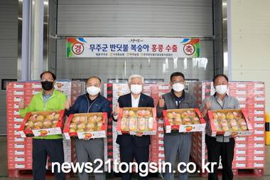 무주군이 당도가 좋은 무주 복숭아의 홍콩 수출을 신고했다고 7일 밝혔다. 황인홍 무주군수는 이날 무주 설천산지유통센터를 방문하고 품질좋은 무주산 반딧불복숭아의 홍콩 수출길에 오르는 현장을 지켜봤다.