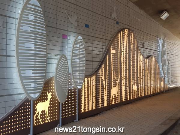 (대구=뉴스21통신) 유재원기자 = 대구 북구청은 최근 태전육교(통로박스) 내부 및 입구를 깨끗하게 세척하고 내부 조형 시설물을 설치하여 주민들에게 세련되고 아름다운 도시 경관을 제공한다.