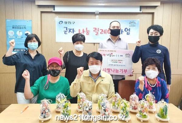 군자동 나눔이웃 동아리 ‘정다운 우리’ 회원들이 10일 코로나19 장기화로 지친 중장년 취약계층 13가구에 반려식물과 에코백을 전달했다.