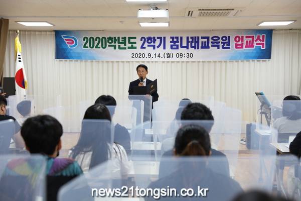 대전교육연수원(원장 이광우) 부설 꿈나래교육원에서는 2020년 9월 14일(월) 위탁교육학생 32명과 교직원 14명이 참석한 가운데 ‘꿈나래교육원 제8기 입교식’을 개최하였다.