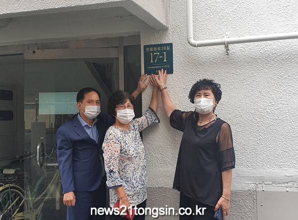 이에 달성군은 지난해 11월 도로명주소 불편 개선 추진계획 수립 후 입주자 간담회 등을 거쳐 성창빌라에 거주하는 각 가구를 방문하여 전체 주소사용자 88명의 신청을 받아, 각 동별로 건물번호를 새로이 부여하고 외관과 어울리는 자율형 건물번호판을 제작․부착했다.