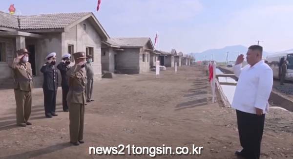 김정은 국무위원장이 태풍 피해 복구 작업을 가장 먼저 끝낸 황해북도 금천군 강북리를 찾아 인민군을 격려했다.
