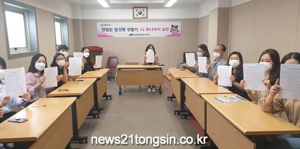 청렴은 직급 및 직위에 관계없이 공직자가 기본적으로 갖추어야 될 덕목이자 가장 중요한 의무이다. 이에 칠성동 직원들은 ‘청렴! 나 하나부터 실천’이라는 청렴슬로건과 같이 청렴에 대한 스스로의 의지를 다잡는 시간을 가졌다.