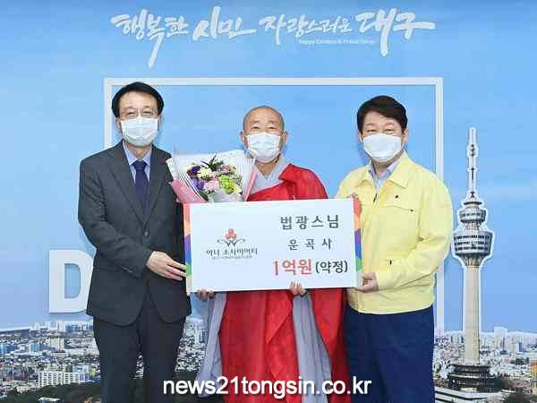 법광스님은 “나의 작은 기부가 마중물이 되어 희생과 보시의 따뜻한 마음이 대구 곳곳에 퍼져나갔으면 한다.”며 “전달된 성금이 우리지역에 도움이 꼭 필요한 이웃들에게 잘 전달되길 바란다.”고 전했다.