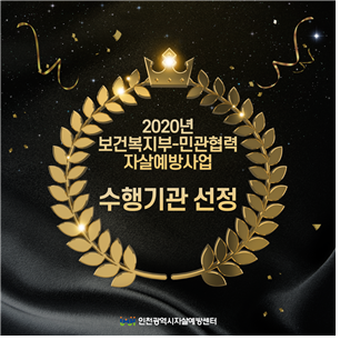 인천광역시(시장 박남춘)는 보건복지부가 주관한 『2020년 민관협력 자살예방사업』수행기관 공모사업에서 인천광역시자살예방센터가 수행기관으로 선정됐다고 17일 밝혔다.