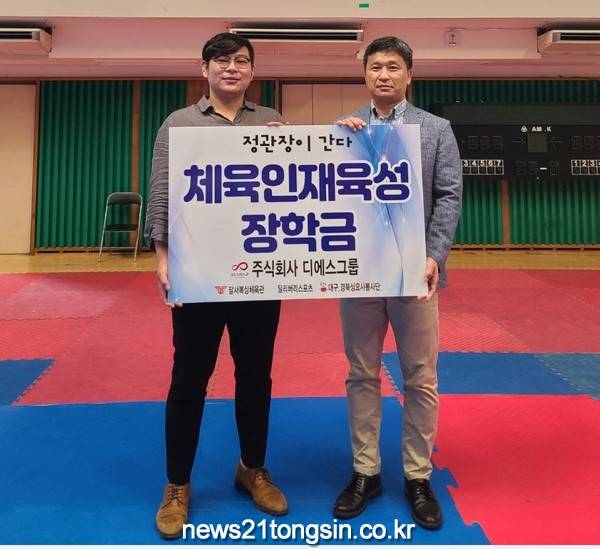 (대구=뉴스21통신) 유재원기자 = (주)디에스그룹(대표이사 정희준)은 지난 18일 계명문화대학교 생활체육학부를 방문하여 코로나19 극복을 위한 우수학생에게 체육인재장학금 전달식을 가졌다.