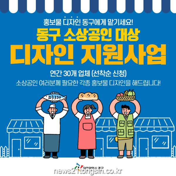 황인호 동구청장은 “디자인 지원 사업이 지역경제에 활력을 불어넣을 것으로 기대하고 있다”며 “이번 사업을 통해 코로나19로 위축된 소상공인들의 경제에 보탬이 되길 바란다”고 말했다.