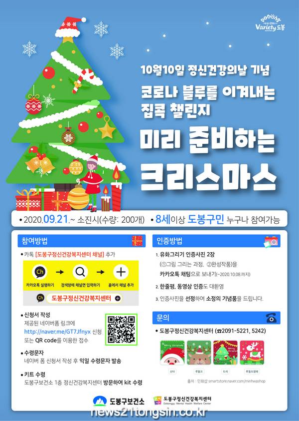 이에 도봉구도 ‘코로나 블루를 집콕 챌린지-미리 준비하는 크리스마스’를 운영해 코로나 블루 극복 활동에 동참하고 있다.