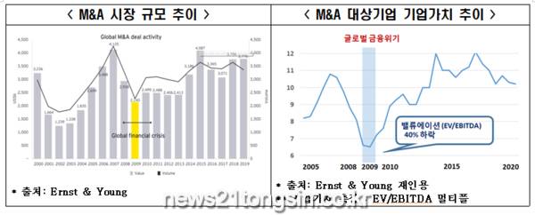 실제로 글로벌 금융위기 당시의 M&A 시장 현황을 살펴보면, 2009년 M&A 시장 규모는 전년대비 27% 축소되었으나 M&A 대상기업의 가치평가도 40% 가량 하락하여 우량기업을 낮은 가격에 인수할 수 있는 기회가 열렸다.