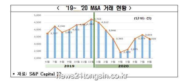 글로벌 컨설팅기업 Ernst&Young에서 46개국 글로벌기업 CEO를 대상으로 한 설문조사에 따르면, 응답자의 56%가 ‘향후 1년 내 M&A에 적극 나설 계획’이며, 38%가 코로나19 M&A 전략으로 ‘인수대상 기업의 가치하락을 노린다’고 응답해, 기회를 선점하기 위한 포스트-코로나 M&A 시장 활성화가 예상된다.