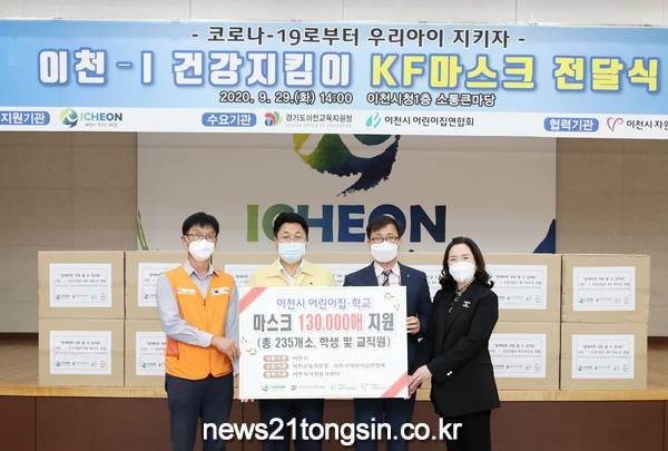 이천시가 보건용마스크 13만 장을 이천교육지원청 및 이천시어린이집연합회에 전달했다.
