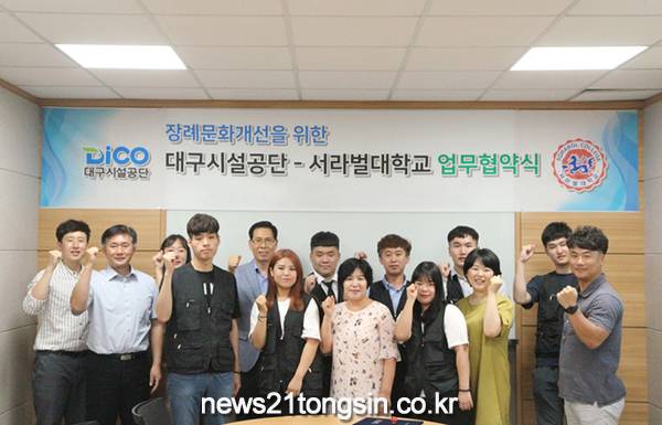(대구=뉴스21통신) 유재원기자 = 대구시설공단 명복공원은 서라벌대학교 장례서비스경영학과와 상호협력을 통한 장례문화서비스개선을 위해 10월 7일부터 11일까지 5일간 현장실습을 실시한다고 밝혔다.