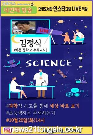 이천시립효양도서관은 굿초이스 네 번째 강연자로 이천중학교 김정식 수석교사를 초청하여 10월20일(화) 오후2시 인스타그램(계정명:hyoyang_library)라이브특강을 진행한다.