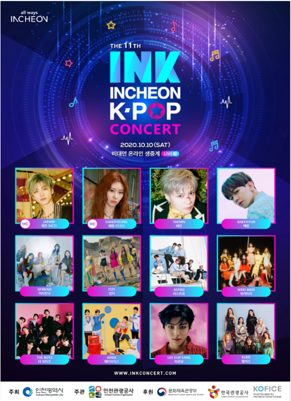 인천광역시(시장 박남춘)와 인천관광공사(사장 민민홍)는 10월 10일(토) 온라인·무관중 생중계로「제11회 INK(Incheon K-Pop)콘서트」(이하 INK콘서트)를 개최한다고 밝혔다.