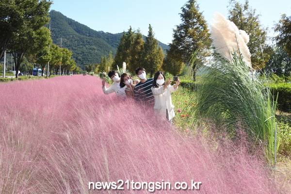 특히 핑크뮬리와 팜파스그라스가 청명한 하늘과 어우러져 가을 정취를 듬뿍 자아내면서, 코로나19로 지친 시민들이 모처럼 아름다운 풍경을 배경으로 분홍빛 추억을 담고 있다.