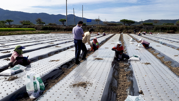 초계면장, 마늘 모종 일손 현장 찾아 농민 격려