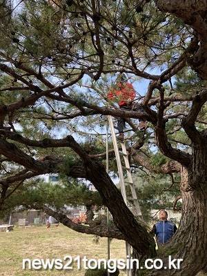 갑천면 병지방리에 거주하는 귀촌인 최영준씨가 수령이 100년이 넘은갑천면의 대표적인 수종인 소나무에 대한 전지작업 자원봉사에 나섰다.