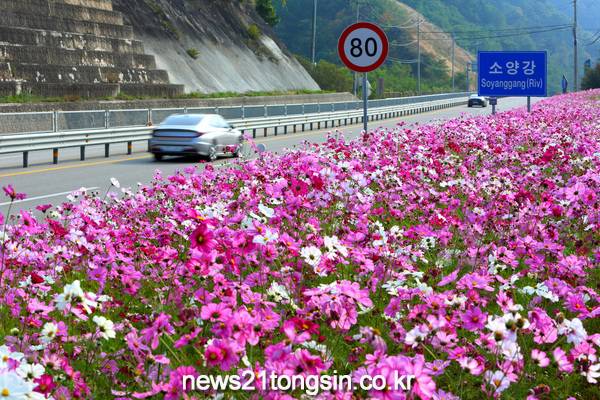 인제군이 주요 도로변 곳곳에 ‘꽃으로 덮인 인제 코스모스’길 조성으로 지역주민과 관광객들에게 가을 정취를 만끽할 수 있는 즐거움을 선사하고 있다.