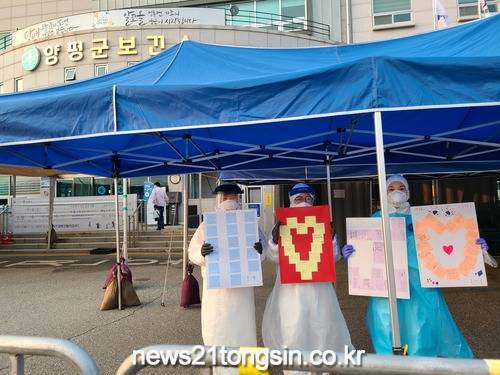 양평군보건소는 지난 12일 코로나 19로 온 국민이 어렵고 힘든 이 시기에 지역을 넘어 대한민국의 의료진을 응원하기 위한 독창적인 아이디어로 ‘코로나19 의료진 응원달리기 챌린지 영상 및 손편지’를 전달받았다. 확인 결과, 이 영상의 지도교사는 양일중학교 김소정선생님이었다.