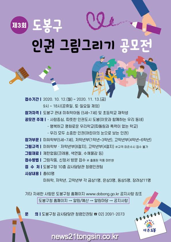 도봉구(구청장 이동진)가 어린이들의 인권 감수성 향상을 위해 ‘제3회 도봉구 인권그림그리기 공모전’을 개최한다.