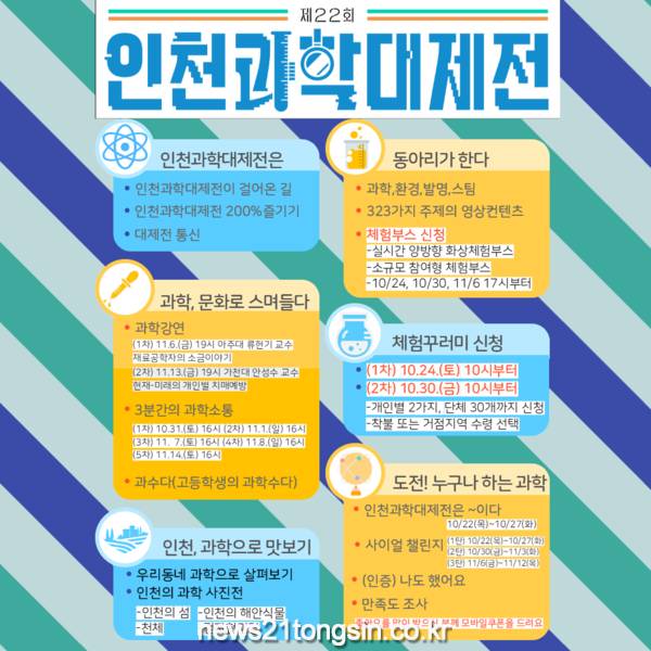 인천광역시교육청(교육감 도성훈)은 10월 22일부터 11월 15일까지 ‘우리가 만드는 제22회 인천과학대제전’을 개최한다.