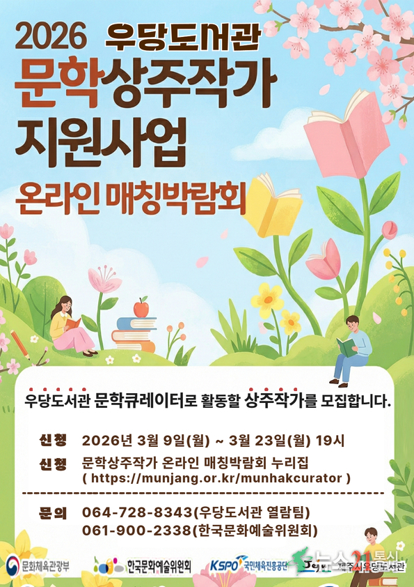 우당도서관은 문화체육관광부가 주최하고 한국문화예술위원회가 주관하는 ‘문학상주작가 지원사업’에 선정됨에 따라 사업에 참여할 상주 작가를 모집한다. ❍ 청년참여형 분야로 총 2명의 작가를 모집하며, 일반 작가 1명과 39세 이하(1986. 5. 2. 이후 출생자) 청년 작가 1명을 각각 채용할 계획이다. ❍ 채용된 작가는 올해 5월부터...