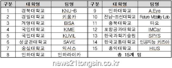 5G 통신을 활용해 열리는 이번 대회에는 국내 대학 15개 팀이 참여해 그동안의 노력한 결과를 평가받게 된다. 평가는 수성알파시티 내 도로의 각 팀별 출발지에서 자율주행 차량이 동시에 출발, 중간에 손님을 태우고 정해진 목적지로의 이동 및 도착 과정을 평가해 순위를 결정한다.