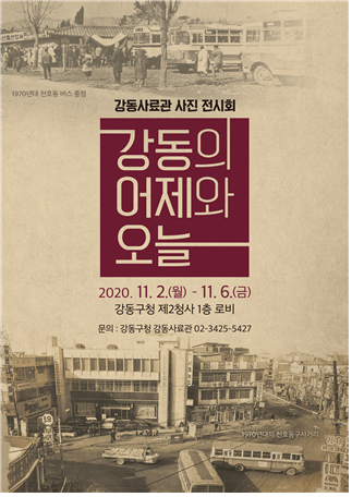 「강동의 어제와 오늘」 사진전은 오는 11월 2일부터 6일까지 5일간 강동구청 제2청사 1층 로비에서 열리며 전시회에 걸린 사진과 자료들은 영상으로도 제작돼 강동구 블로그, 페이스북 등 SNS를 통해 만나볼 수 있다.