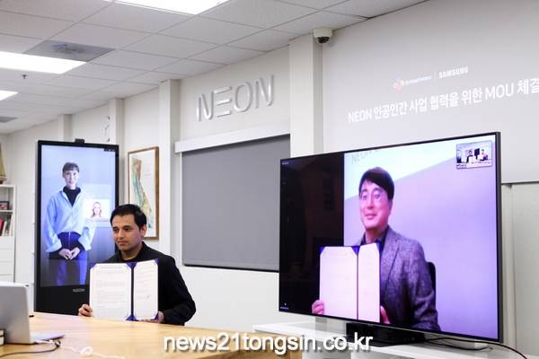 언택트로 진행된 이번 협약을 통해 양사는 인공인간 AI 기술 공동 협력과 인공인간 기반 미디어 사업협력을 하기로 했으며, 상호 발전과 우호증진에 필요한 사항들을 적극 협력한다는 계획이다.