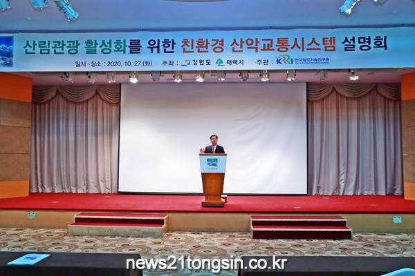 류태호 태백시장은 27일(화) 오투리조트 컨벤션센터에서 개최된 친환경 산악교통시스템 설명회에서 “산지가 대부분인 태백시가 산악관광의 최적지”라고 말했다.