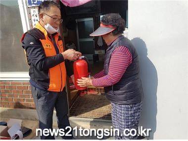 주산면 의용소방대(대장 김주철)는 지난 27일 관내 화재 취약계층에게 경보기 설치 및 소화기를 전달하는 봉사활동을 펼쳤다. 이 날 봉사활동에는 20여명의 의용소방대원이 참여했으며, 관내 화재 취약계층인 독거어르신 등 70여 가구를 방문하여 직접 가정에 경보기를 설치하고 소화기를 전달하였다. 안전용품을 전달받은 김모 어르신은 “주산면 의용소방대의 활동으로 화재 걱정 없이 안전하게 생활하고 있다.”며 감사의 마음을 전했다.