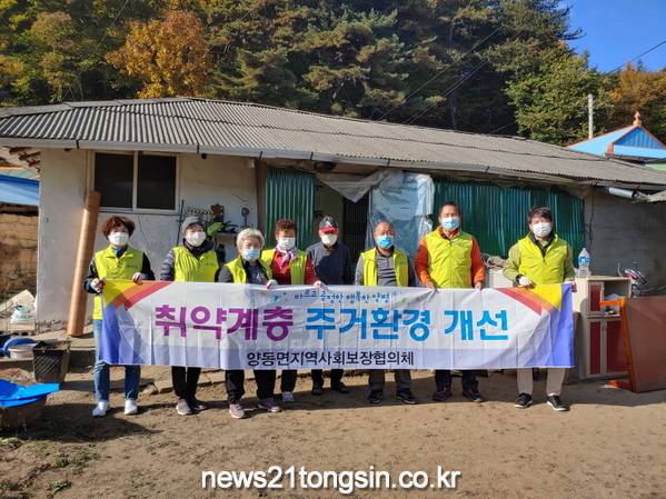 지난 28일 쌀쌀해진 날씨에도 불구하고 양동면 지역사회보장협의체(위원장 이준엽)에서는 관내 저소득 취약계층 두 가정에 주거환경개선 사업을 추진했다.